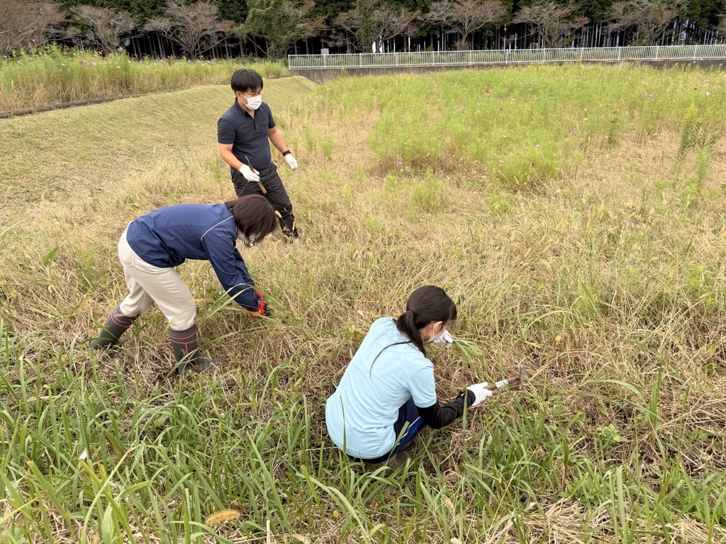 鎌や剪定ばさみを使い、雑草を刈りました。